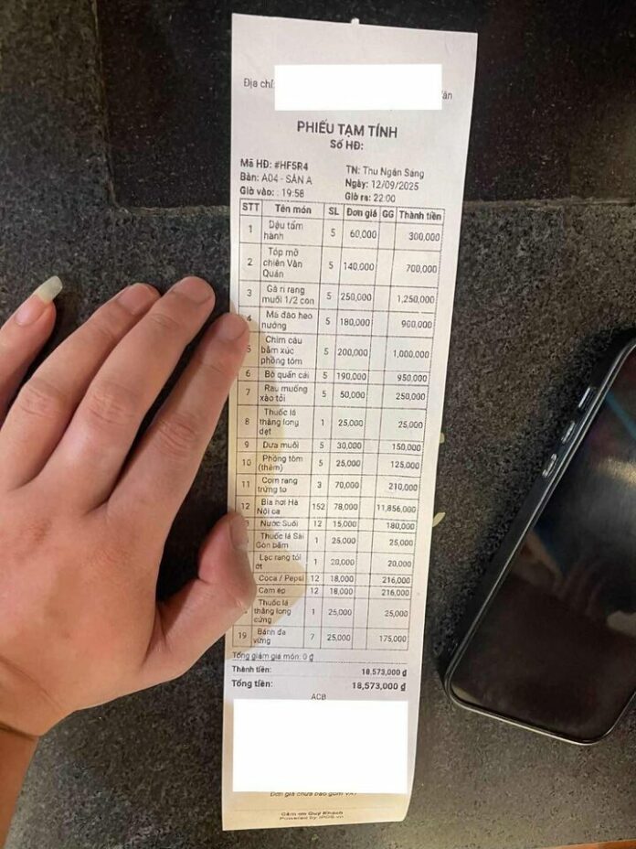 Một nhóm bạn tầm 30 người (5 người không uống bia) kéo nhau đi “chill” tại một quán nhậu. Sau một hồi “chén chú chén anh”, đến lúc thanh toán thì “tá hỏa” khi thấy hóa đơn lên tới 18 triệu đồng. Nghi ngờ có “điềm”, trưởng nhóm liền kiểm tra kỹ càng…