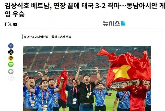 Chiến thắng nghẹt thở 3-2 của U22 Việt Nam trước U22 Thái Lan tại chung kết SEA Games đã gây tiếng vang lớn, không chỉ trong nước mà còn lan sang cả giới truyền thông quốc tế. Đặc biệt, các tờ báo Hàn Quốc đã không tiếc lời ca ngợi màn trình diễn quả cảm và tinh thần chiến đấu kiên cường của thầy trò HLV Kim Sang Sik.