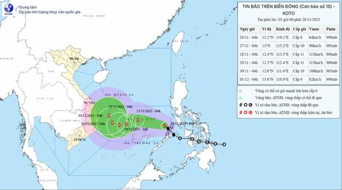 Theo thông tin mới nhất từ Trung tâm Dự báo Khí tượng Thủy văn Quốc gia, áp thấp nhiệt đới đã mạnh lên thành bão và có tên quốc tế là Koto. Đây là cơn bão số 15 trên Biển Đông trong năm nay, một dấu hiệu cho thấy mùa bão vẫn còn diễn biến phức tạp.