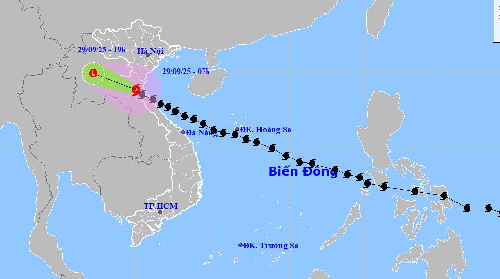 Tính đến 7 giờ sáng ngày 29/09/2025, tâm bão số 10 đã suy yếu thành áp thấp nhiệt đới và nằm trên đất liền khu vực biên giới Nghệ An – Trung Lào. Vị trí cụ thể là khoảng 18,8 độ vĩ bắc và 105,1 độ kinh đông. Mặc dù đã suy yếu, vùng gần tâm áp thấp vẫn duy trì sức gió mạnh cấp 9 (75 – 88km/giờ), với những cơn giật lên đến cấp 12. Bão số 10 đang di chuyển theo hướng tây tây bắc với tốc độ khá nhanh, khoảng 20 – 25km/giờ.