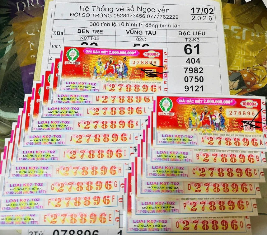 Chiều 17-2 (mùng 1 Tết), xổ số miền Nam công bố kết quả với giải độc đắc của Bến Tre, Vũng Tàu và Bạc Liêu. Vé số Vũng Tàu trúng độc đắc 32 tỷ đồng tại Đồng Nai nhưng chủ nhân chưa xuất hiện. Vé số Bến Tre trúng tại TP.HCM, còn Bạc Liêu chưa xác định nơi trúng. Các giải an ủi đã được khách hàng đến đổi thưởng tại nhiều đại lý.