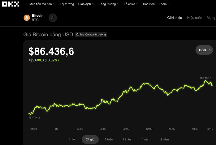 Thị trường tiền số vừa trải qua một đợt phục hồi đáng kể sau những ngày giảm sâu. Bitcoin, đồng tiền số hàng đầu, đã tăng hơn 3% trong 24 giờ qua, giao dịch quanh mức 86.400 USD. Sự phục hồi này mang đến tín hiệu tích cực cho các nhà đầu tư sau thời gian lo lắng.