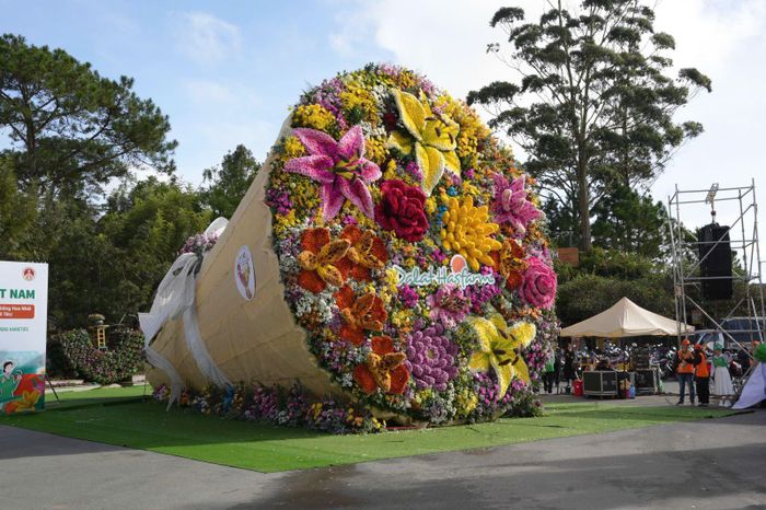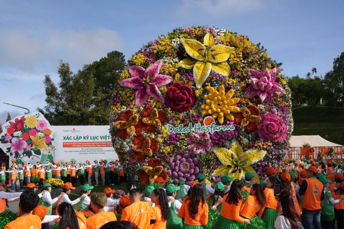 Để biến ý tưởng thành hiện thực, hơn 150 nghệ nhân, kỹ thuật viên và nhân viên của Dalat Hasfarm đã làm việc không ngừng nghỉ trong suốt hơn 24 giờ. Dưới sự cố vấn của các chuyên gia cắm hoa hàng đầu, họ đã tỉ mỉ lựa chọn, cắt tỉa và kết nối từng cành hoa, tạo nên một tác phẩm nghệ thuật hoành tráng và đầy màu sắc.