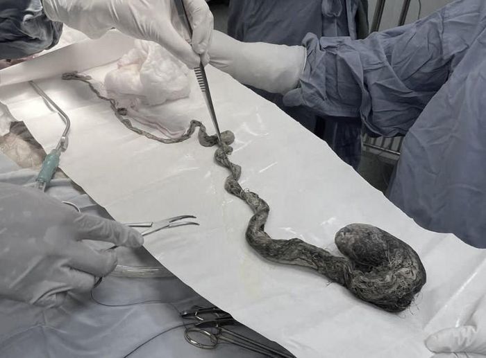Sau khi thăm khám và thực hiện các xét nghiệm cần thiết, các bác sĩ đã phát hiện ra một sự thật đáng kinh ngạc: một khối tóc lớn “án ngữ” trong dạ dày của bé, không chỉ chiếm trọn không gian mà còn kéo dài xuống tận ruột non. Tình hình này vô cùng nguy hiểm và cần phải can thiệp phẫu thuật ngay lập tức.