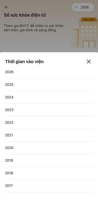 Bước 4: Xem lịch sử khám chữa bệnh theo năm