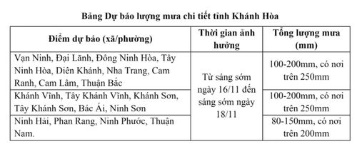 Theo số liệu từ Đài khí tượng thủy văn tỉnh Khánh Hòa, lượng mưa đo được tại Nha Trang và các khu vực lân cận đã vượt quá mức báo động. Cụ thể, tại trạm Khí tượng Nha Trang, lượng mưa đo được là 75,6mm, trong khi tại trạm Diên Phú là 62,4mm. Lượng mưa lớn này đã gây ra tình trạng ngập úng cục bộ tại nhiều tuyến đường và khu dân cư.
