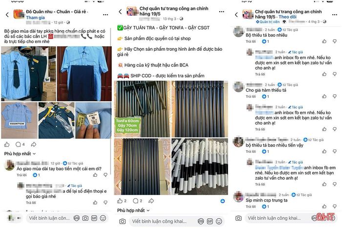 Thật đáng ngạc nhiên khi các mặt hàng vốn được quản lý chặt chẽ như gậy tuần tra, gậy chỉ huy giao thông, khóa số 8… cũng xuất hiện tràn lan trên các trang này. Những người bán thường sử dụng những lời quảng cáo hấp dẫn như “hàng độc quyền”, “chuẩn kỹ thuật hậu cần Bộ Công an” để thu hút người mua. Mức giá cũng rất đa dạng, từ vài trăm nghìn đến vài triệu đồng, kèm theo dịch vụ giao hàng tận nơi nhanh chóng. Để thuận tiện cho việc giao dịch và né tránh sự kiểm soát của cơ quan chức năng, các đối tượng thường yêu cầu người mua liên hệ và trao đổi qua tin nhắn riêng.