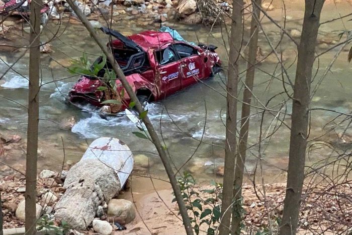Do không kiểm soát được tốc độ, xe tải đã lao thẳng vào một chiếc ô tô bán tải đang di chuyển cùng chiều. Cú va chạm mạnh khiến chiếc xe bán tải mất lái, đâm vào lan can cầu và bị hất văng xuống suối. Thời điểm xảy ra tai nạn, trên xe bán tải có 4 người.