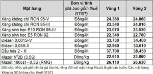 | 1 | Xăng RON 95-III | 23.540 đ | |