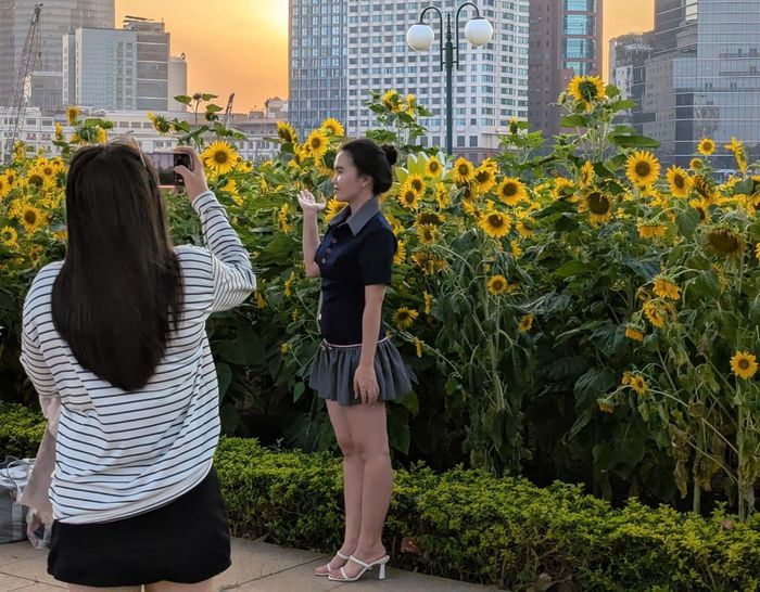 Không cần phải đi đâu xa, ngay tại trung tâm thành phố, bạn đã có thể chiêm ngưỡng một cánh đồng hoa hướng dương đẹp đến nao lòng. Các bạn trẻ Sài Gòn nhanh chóng “bắt trend”, rủ nhau đến đây để “săn” những bức ảnh đẹp. Từ những bộ váy áo nhẹ nhàng, nữ tính đến phong cách năng động, cá tính, tất cả đều hòa quyện vào khung cảnh thiên nhiên, tạo nên những khoảnh khắc đáng nhớ.
