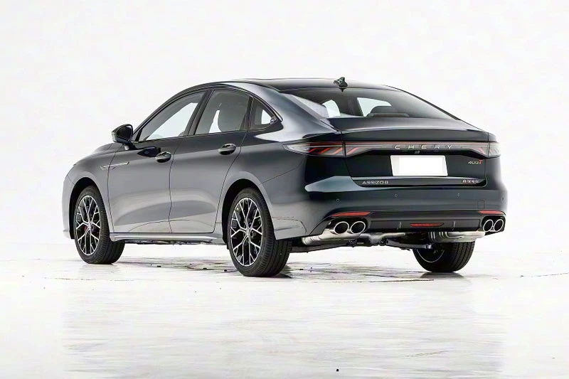 Phần đuôi xe gây ấn tượng mạnh mẽ với cụm đèn hậu LED dạng thanh kéo dài toàn bộ chiều rộng. Thiết kế này không chỉ tăng tính nhận diện cho xe vào ban đêm mà còn tạo cảm giác bề thế và hiện đại. Hệ thống ống xả kép bốn họng cũng là một điểm nhấn đáng chú ý, thể hiện rõ phong cách thể thao và mạnh mẽ của Arrizo 8 Pro 2026.