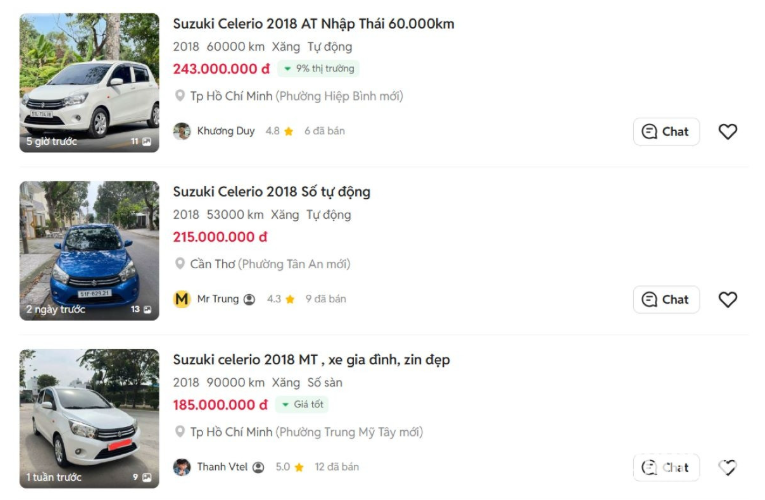 Một yếu tố quan trọng khác khiến Celerio cũ được ưa chuộng là giá cả. Hiện tại, giá xe Suzuki Celerio cũ đang dao động từ 170-245 triệu đồng, rẻ hơn đáng kể so với các mẫu xe cùng đời như VinFast Fadil hay Hyundai Grand i10.