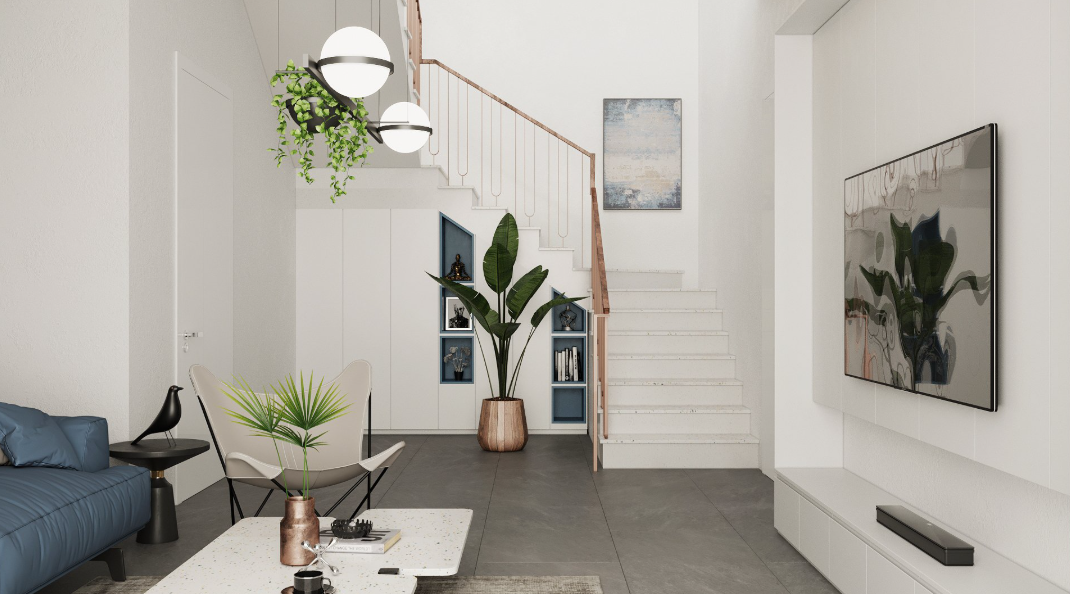 - Treo tranh ảnh hoặc vật phẩm phong thủy mang ý nghĩa tốt lành ở khu vực cầu thang để cải thiện vận khí.