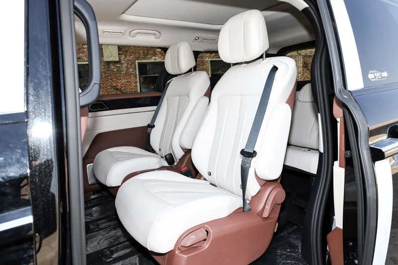Khoang hành khách được bố trí 2+2+3, với ghế trước có sưởi, thông gió, massage và nhớ vị trí. Ghế thuyền trưởng hàng hai có bàn gập và tựa chân, mang đến sự thoải mái tối đa cho hành khách. Các phiên bản cao cấp còn được trang bị tủ lạnh điều nhiệt, màn hình giải trí 15,6 inch phía sau và cửa sổ trời toàn cảnh hai phần.