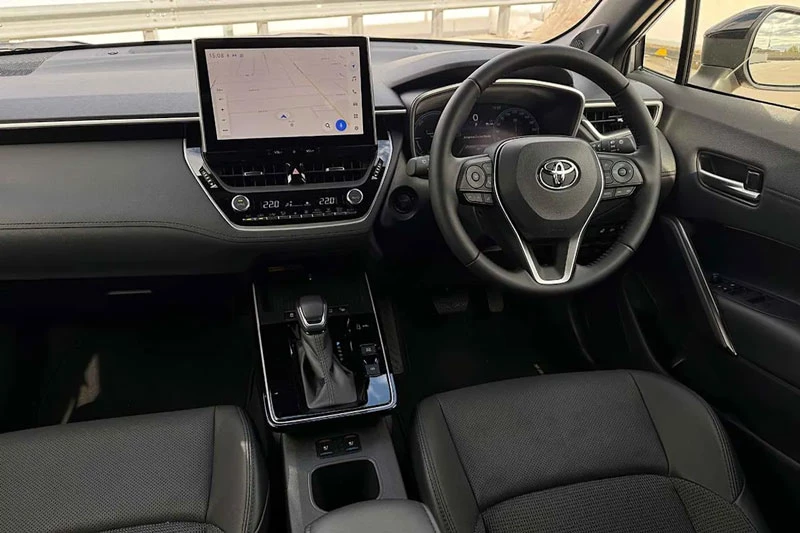Nội thất của Corolla Cross 2026 được thiết kế theo phong cách hiện đại và tiện nghi với các chi tiết bọc da mềm mại, ốp kim loại sang trọng và bố trí khoa học. Không gian bên trong xe rộng rãi và thoải mái, phù hợp cho cả gia đình.