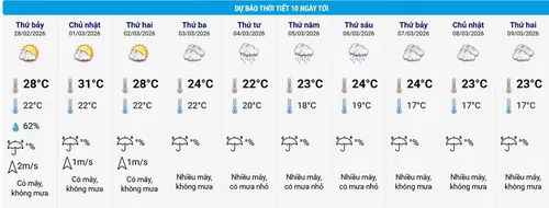 Tại khu vực Nam Bộ nói chung và Thành phố Hồ Chí Minh nói riêng, dự báo thời tiết sẽ có nhiều mây, có mưa rào và giông vài nơi. Gió nhẹ sẽ hoạt động. Mặc dù số lượng cơn mưa có thể không nhiều, nhưng những cơn mưa dông này vẫn tiềm ẩn nguy cơ về lốc, sét, mưa đá và gió giật mạnh. Nhiệt độ ở Nam Bộ khá cao, dao động từ 22-25 độ C vào ban đêm và 30-33 độ C vào ban ngày. Riêng tại TP. Hồ Chí Minh, nhiệt độ ban đêm khoảng 23-25 độ C và ban ngày khoảng 30-32 độ C. Thời tiết oi nóng kết hợp với những cơn mưa dông bất chợt sẽ là đặc trưng của khu vực này trong ngày 28/2/2026.