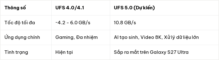 Bài viết này sẽ đi sâu vào tiềm năng của chuẩn bộ nhớ UFS 5.0, đặc biệt là khi Samsung dự kiến sẽ tích hợp nó trên dòng Galaxy S27 Ultra. Chúng ta sẽ cùng khám phá những lợi ích vượt trội mà chuẩn bộ nhớ này mang lại, từ tốc độ truyền tải dữ liệu, khả năng xử lý các tác vụ AI phức tạp cho đến những dự đoán về lộ trình ra mắt và tính khả thi của công nghệ.