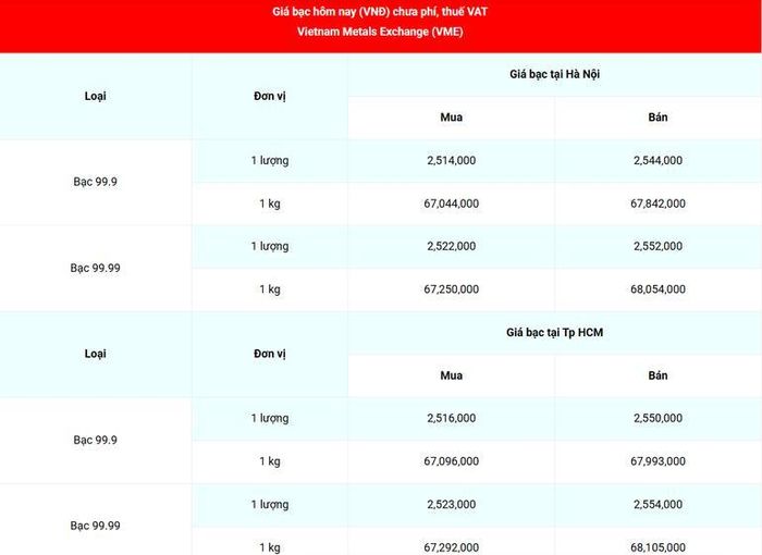 Giá Bạc Tại Các Thành Phố Lớn (Hà Nội & TP.HCM)