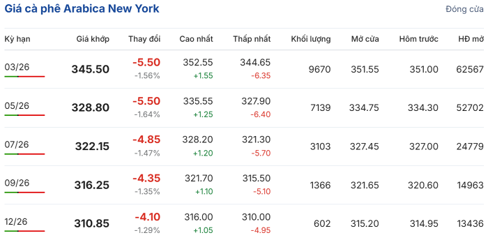Ngược lại với robusta, giá cà phê arabica trên sàn New York lại tiếp tục xu hướng giảm. Điều này có thể do nhiều yếu tố, bao gồm cả kỳ vọng về sản lượng cà phê arabica của Brazil.