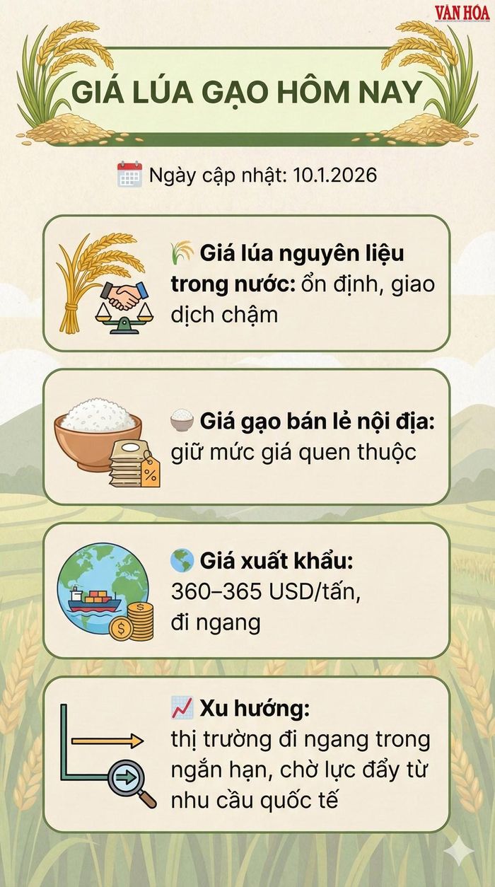Ở kênh xuất khẩu, giá gạo Việt Nam trong ngày 10 tháng 1 vẫn duy trì sự ổn định, chưa có sự bứt phá đáng kể. Nhu cầu nhập khẩu từ các thị trường lớn chưa tăng mạnh, khiến các doanh nghiệp xuất khẩu giữ chiến lược thận trọng, tập trung duy trì các đơn hàng hiện có hơn là đẩy giá.