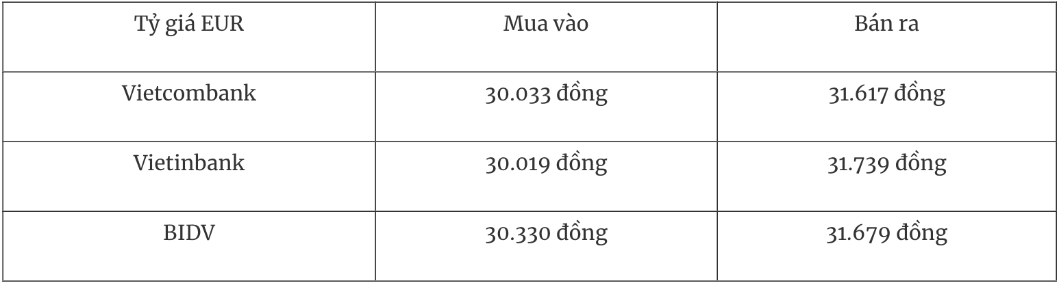 Tỷ giá EUR và JPY tại thị trường Việt Nam