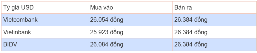 Tỷ giá USD tại các ngân hàng thương mại
