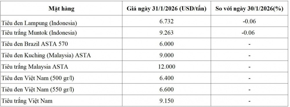 Giá Tiêu Thế Giới: Bức Tranh Toàn Cảnh Ngày 31/01/2026