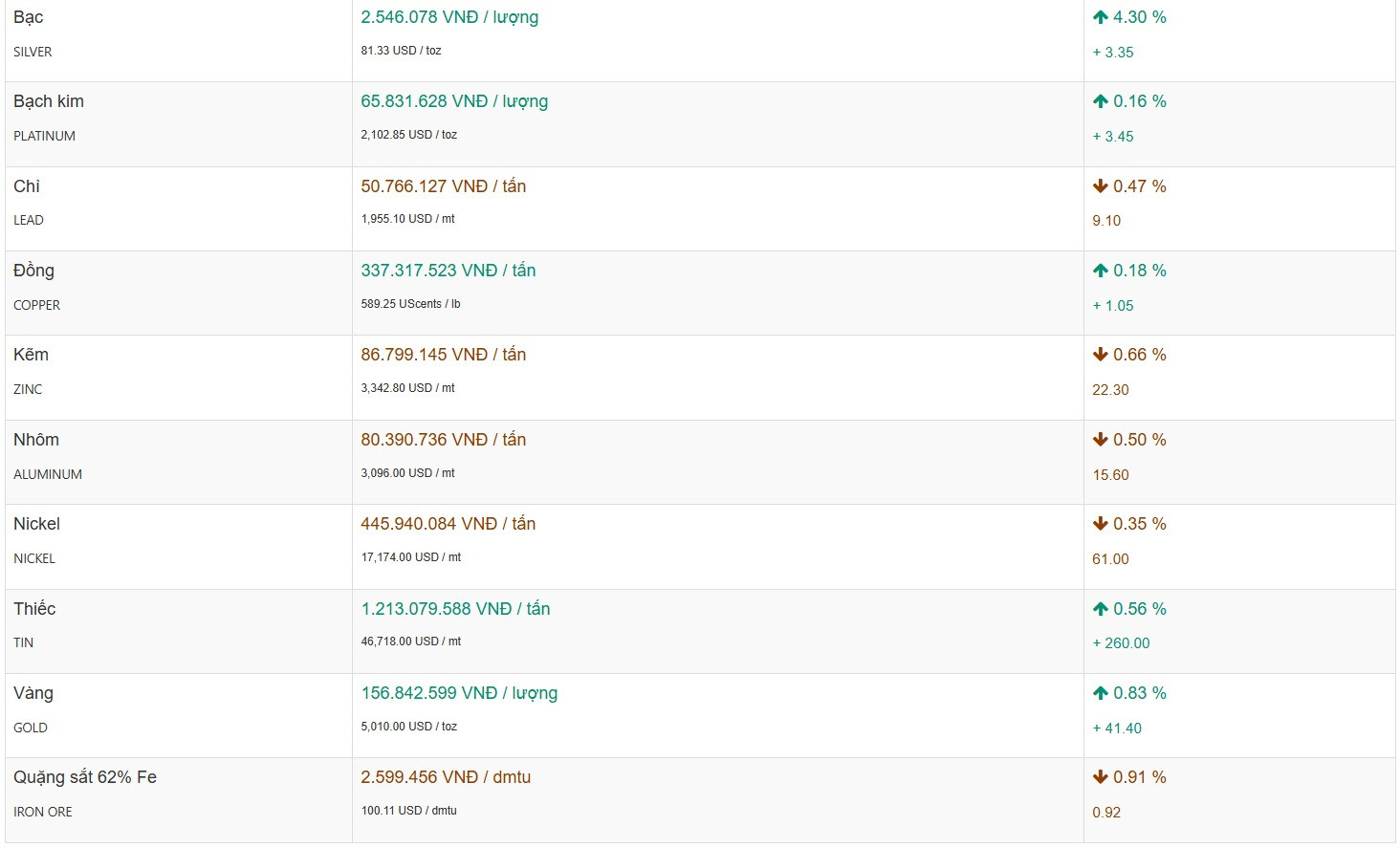 Giá vàng hôm nay