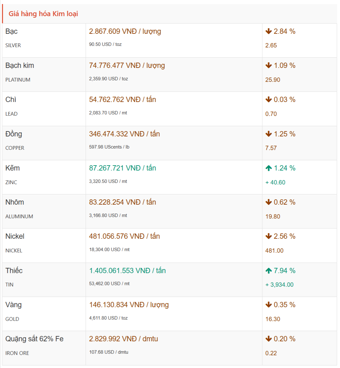 Nữ trang 41,7% 57,834 ▼291K 66,334 ▼291K