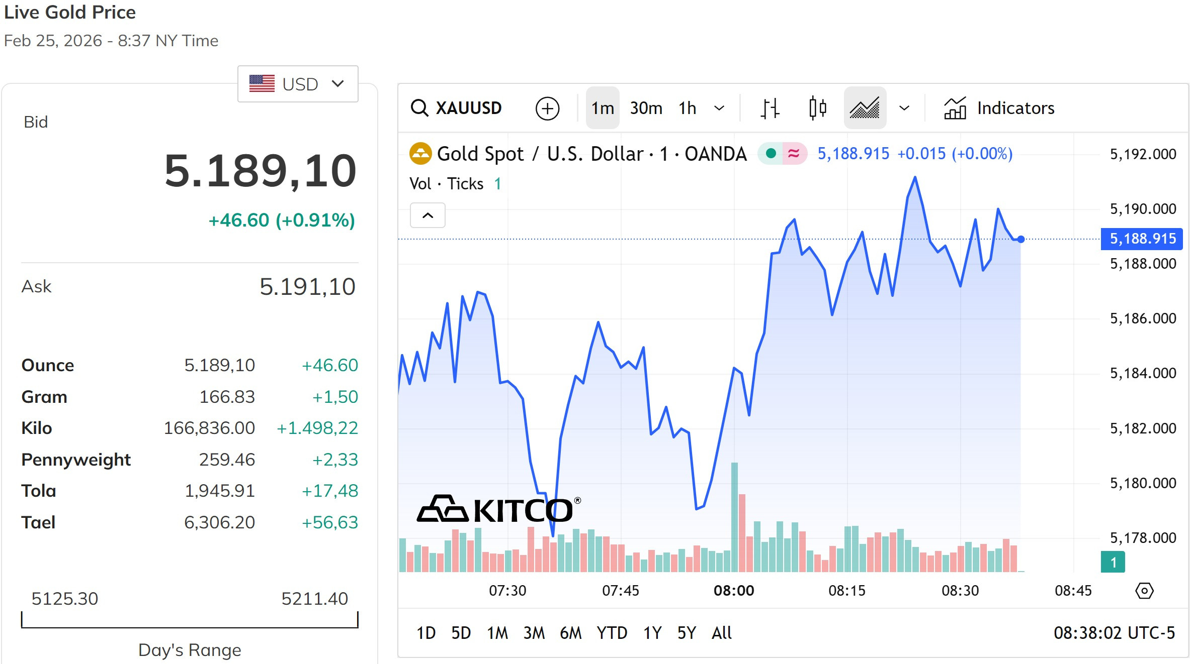 Mốc 5.189,1 USD/ounce và xu hướng tăng nhẹ