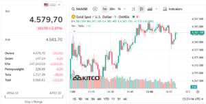 Theo thông tin từ Kitco, vào lúc 4h00 sáng nay, ngày 29/4/2026 (giờ Việt Nam), giá vàng thế giới giao ngay đã giảm mạnh 101,50 USD, tương đương 2,17%, xuống còn 4.579,70 USD/ounce. Nếu quy đổi theo tỷ giá Vietcombank hiện tại (26.366 VND/USD), giá vàng thế giới tương đương khoảng 145,58 triệu đồng/lượng, chưa tính các loại thuế và phí. Điều này cho thấy vàng miếng SJC hiện đang cao hơn giá vàng thế giới quy đổi khoảng 23,25 triệu đồng/lượng, một khoảng chênh lệch không hề nhỏ.