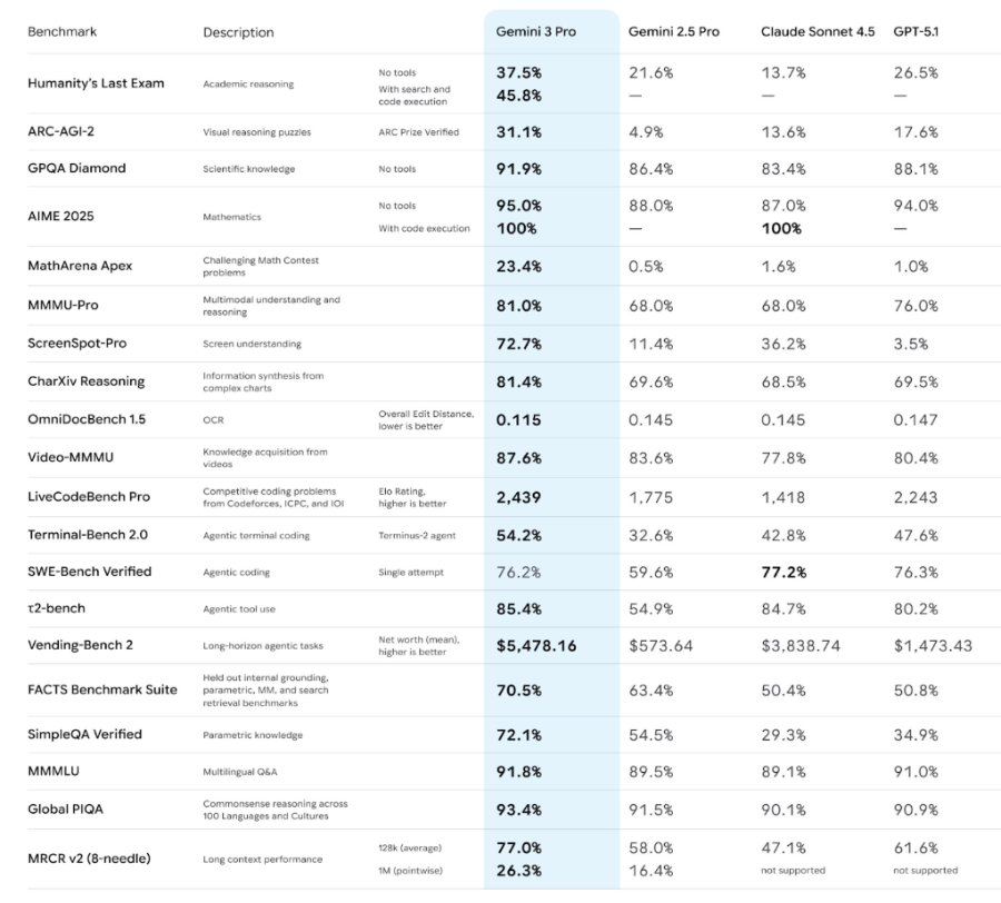 - Khả năng lập luận cấp tiến sĩ: Gemini 3 Pro đạt 1.501 điểm trên bảng xếp hạng LMArena, vượt xa 2.5 Pro (1.470 điểm). Trong bài kiểm tra Humanity’s Last Exam, mô hình trả lời đúng 37,5% câu hỏi mà không cần công cụ hỗ trợ – một bài kiểm tra đòi hỏi tư duy độc lập, phân tích trừu tượng và kiến thức liên ngành.