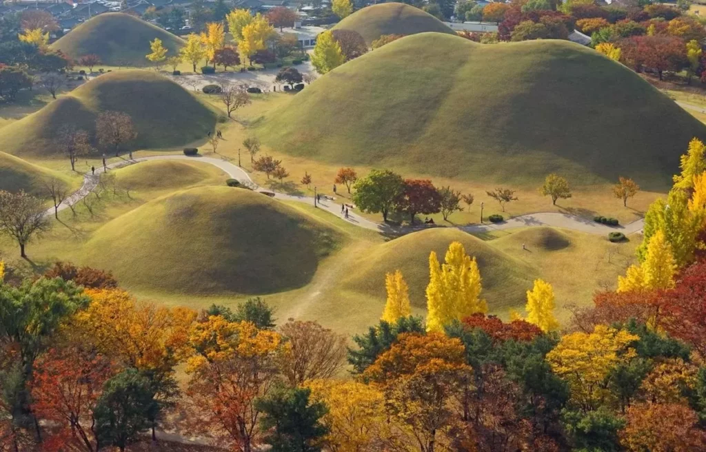 Khu lăng mộ Daereungwon là một trong những điểm đến không thể bỏ qua khi đến Gyeongju. Với những gò đất khổng lồ vươn lên giữa lòng thành phố, Daereungwon là nơi an nghỉ của các vị vua và quý tộc triều đại Silla. Bước vào lăng Cheonmachong, bạn sẽ không khỏi ngỡ ngàng trước vương miện vàng lấp lánh và những món trang sức tinh xảo, những minh chứng cho cuộc sống xa hoa của triều đại Silla. Daereungwon không chỉ là một di tích lịch sử mà còn là một không gian xanh mát, yên bình, nơi bạn có thể cảm nhận được sự tĩnh lặng và suy ngẫm về quá khứ.