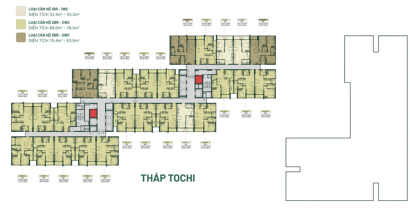 Căn hộ 3PN 2WC 80m², 81m², 82m² 2,8 – 2,9 Tỷ/căn