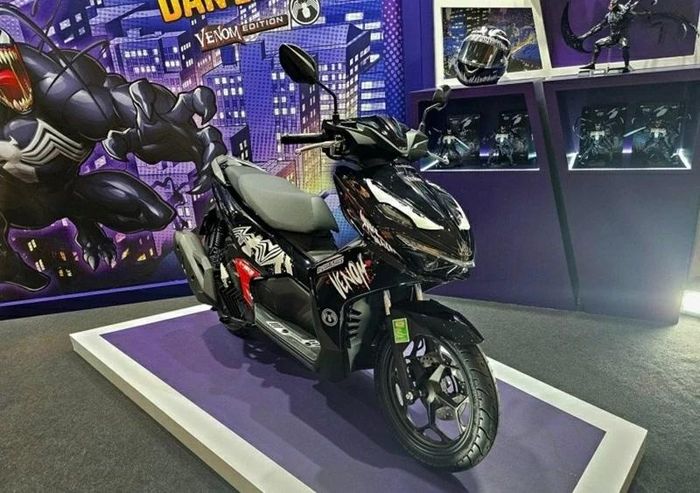 Trái ngược hoàn toàn với sự rực rỡ của Spider-Man, Venom mang đến một phong thái hoàn toàn khác biệt: mạnh mẽ, bí ẩn và đầy uy lực. Phiên bản Honda Air Blade 125 lấy cảm hứng từ Venom cũng thể hiện rõ nét tinh thần này. Gam màu đen tuyền được lựa chọn làm tông màu chủ đạo, toát lên vẻ ngoài cực kỳ ấn tượng và có phần ma mị. Điểm nhấn đặc biệt và thu hút sự chú ý nhất chính là hình ảnh gương mặt đặc trưng của Venom được mô phỏng đầy sống động trên phần yếm trước của xe. Sự kết hợp giữa màu đen bí ẩn và những chi tiết tem màu trắng, đỏ được thêm vào một cách chiến lược không chỉ tạo hiệu ứng tương phản mạnh mẽ mà còn giúp chiếc xe trở nên nổi bật hơn trong bất kỳ điều kiện nào, ngay cả khi sử dụng bảng màu trầm. Tổng thể thiết kế của phiên bản Venom mang đến một cảm giác uy quyền, bí ẩn và đầy cuốn hút, phù hợp với những ai yêu thích sự khác biệt và muốn thể hiện một phong thái mạnh mẽ, không theo lối mòn.