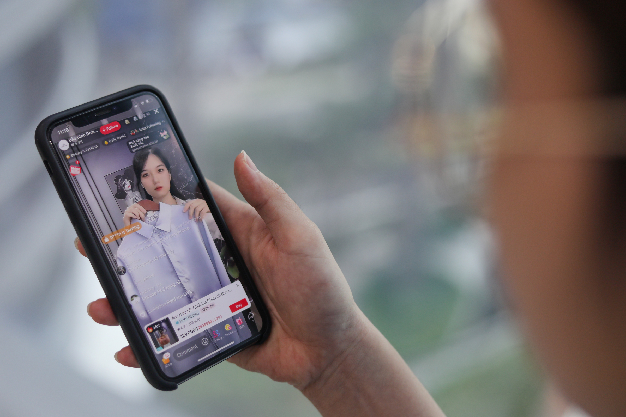 Người tiêu dùng xem livestream bán hàng qua mạng xã hội. Ảnh: Thành Nguyễn