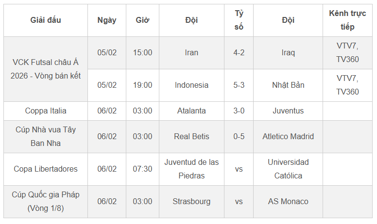 Description: Cập nhật kết quả bóng đá hôm nay, bao gồm các trận đấu trong nước và quốc tế mới nhất. Theo dõi tỷ số, diễn biến và tin tức nóng hổi nhất từ các giải đấu hàng đầu.