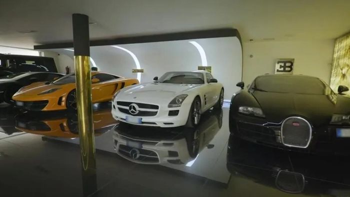 Một điểm nhấn đặc biệt của dinh thự là gara có sức chứa lên đến 20 xe, đủ để chứa bộ sưu tập siêu xe đồ sộ của Ronaldo. Ước tính, bộ sưu tập xe của anh có giá trị còn lớn hơn cả căn biệt thự, khoảng 22 triệu bảng. Chiếc xe đắt giá nhất trong bộ sưu tập là Bugatti Tourbillon, trị giá khoảng 3,2 triệu bảng, thể hiện niềm đam mê tốc độ và sự giàu có của CR7. Ngoài ra, anh còn sở hữu nhiều mẫu xe sang trọng khác như Ferrari, Lamborghini, Rolls-Royce…