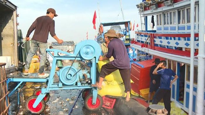 Mỗi chuyến đi biển dài ngày không chỉ là hành trình mưu sinh mà còn là một sự chuẩn bị kỹ lưỡng, từ những vật dụng nhỏ nhất. Dọc theo cầu cảng, mọi người đang tất bật bốc dỡ những bao đá lạnh trắng xóa, những thùng lương thực, thực phẩm tươi ngon, các loại ngư lưới cụ cần thiết và cả những nhu yếu phẩm phục vụ sinh hoạt hàng ngày. Tất cả đều được sắp xếp gọn gàng, cẩn thận, đảm bảo cho con tàu có thể hoạt động trơn tru và hiệu quả trong suốt hành trình dài trên biển.