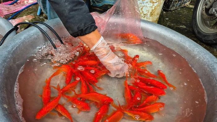 Điều đáng chú ý là người dân vẫn ưu tiên lựa chọn cá chép sống hơn là cá chép giấy. Việc thả cá chép sống thể hiện mong muốn các Táo quân sẽ có một chuyến đi suôn sẻ và mang lại nhiều điều tốt lành cho gia đình trong năm mới.