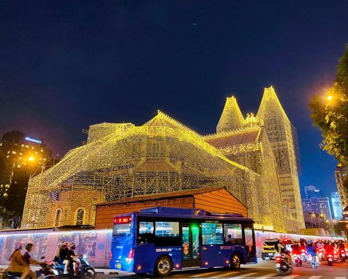 Chắc hẳn ai trong chúng ta cũng đã quen thuộc với hình ảnh Nhà thờ Đức Bà cổ kính, uy nghiêm giữa lòng Sài Gòn rồi đúng không? Nhưng bạn có tin được không, chỉ cần một chút “phép màu” từ ánh sáng, nơi đây đã hoàn toàn “lột xác” trở thành một điểm đến vô cùng quyến rũ và lãng mạn.