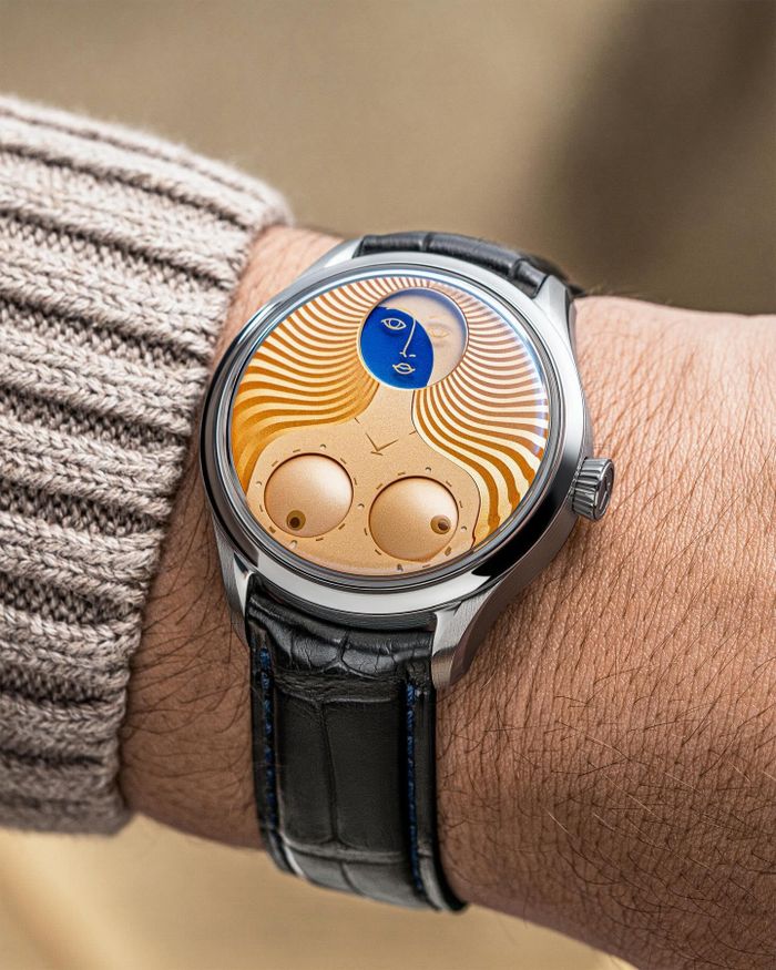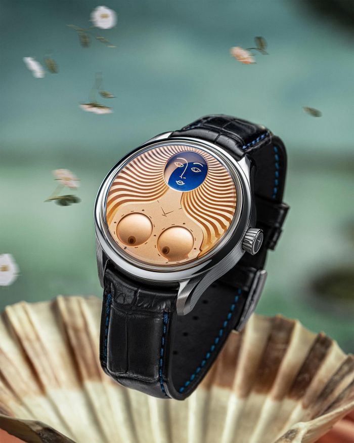 Konstantin Chaykin, một nhà chế tác đồng hồ độc lập nổi tiếng, đã khiến giới mộ điệu phải trầm trồ với sự hợp tác cùng GMT trong mẫu “Venus”. Lấy cảm hứng từ bức họa “The Birth of Venus” (Sự Ra Đời của Venus) của Sandro Botticelli, chiếc đồng hồ này mang đến một cái nhìn hoàn toàn mới về cách xem giờ. Thay vì kim truyền thống, giờ và phút được hiển thị thông qua hai đĩa đặt tại vị trí ngực của nữ thần Venus, tạo nên một bố cục vô cùng độc đáo và quyến rũ. Thêm vào đó, chức năng lịch trăng được sử dụng như khuôn mặt của Venus, tăng thêm vẻ đẹp thần thoại cho cỗ máy thời gian này. Nếu bạn là một người yêu thích nghệ thuật và đồng hồ, thì đây chắc chắn là một mẫu đồng hồ không thể bỏ qua.