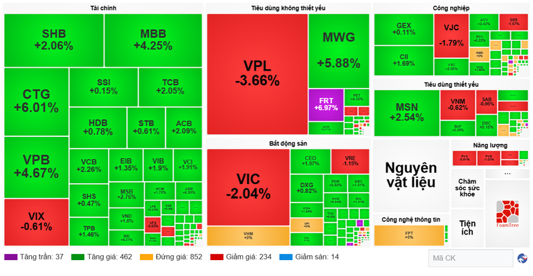 Một trong những yếu tố quan trọng góp phần vào sự thành công của phiên giao dịch này là thanh khoản thị trường. Tổng khối lượng giao dịch trên cả 3 sàn đạt hơn 915 triệu cổ phiếu, tương ứng với tổng giá trị giao dịch lên đến hơn 30.422 tỷ đồng. Điều này cho thấy dòng tiền đang đổ mạnh vào thị trường, tạo điều kiện cho các giao dịch diễn ra sôi động và liên tục. Thanh khoản cao không chỉ giúp thị trường ổn định mà còn tạo ra nhiều cơ hội đầu tư hấp dẫn.