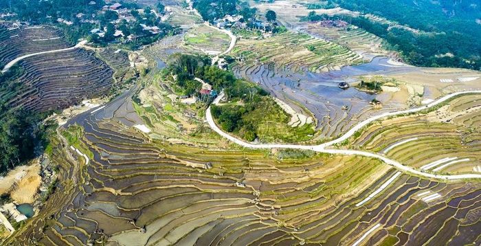 Trong những ngày này, nước từ các khe núi cao chảy về, lấp đầy từng thửa ruộng uốn lượn theo triền đồi. Mặt ruộng phẳng lặng phản chiếu bầu trời xanh biếc, những áng mây trắng trôi lững lờ và cả bóng dáng những nếp nhà sàn mộc mạc nép mình bên sườn núi. Từ xa nhìn lại, cả thung lũng ruộng bậc thang như được phủ bởi hàng trăm tấm gương lớn nhỏ, tạo nên khung cảnh vừa hùng vĩ, vừa thơ mộng.
