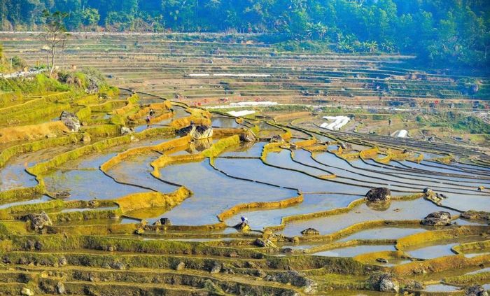 Từ trên cao nhìn xuống, những thửa ruộng ngập nước xen kẽ với màu nâu của đất và sắc xanh non của mạ mới nhú tạo nên một bức tranh đa sắc, sống động. Đó là sự hòa quyện hài hòa giữa bàn tay cần mẫn của con người và vẻ đẹp nguyên sơ của núi rừng xứ Thanh – nơi không gian canh tác quen thuộc được nâng tầm thành một tác phẩm nghệ thuật độc đáo.