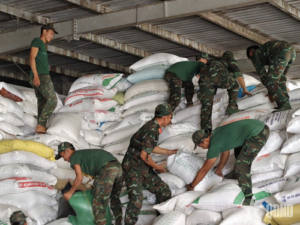 Tại hiện trường, có thể thấy rõ sự hỗn loạn nhưng cũng thể hiện tinh thần làm việc khẩn trương của lực lượng chức năng. Các bao lúa, bao gạo được vận chuyển nhanh chóng bằng nhiều phương tiện khác nhau, dưới sự chỉ đạo của các sĩ quan. Lực lượng cứu hộ cũng đã triển khai các biện pháp khảo sát, đánh giá mức độ nguy hiểm, khoanh vùng khu vực có nguy cơ cao để đảm bảo an toàn cho người dân và cán bộ làm nhiệm vụ. Sự phối hợp nhịp nhàng giữa các đơn vị cho thấy sự chuẩn bị và phản ứng nhanh nhạy trước các tình huống khẩn cấp.