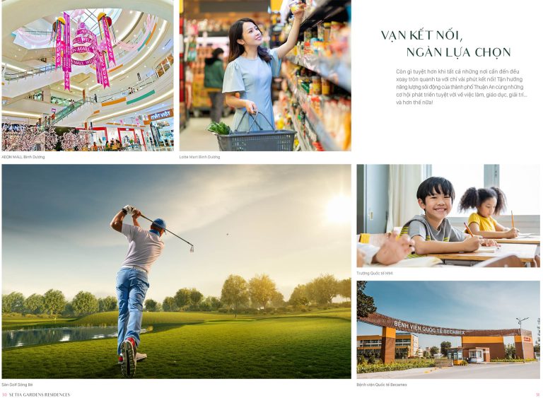 Tiện ích ngoại khu Setia Edenia được thừa hưởng trọn vẹn nhờ vị trí đắc địa. Cư dân dễ dàng tiếp cận các tiện ích như siêu thị (Coop Mart, Lotte Mart), bệnh viện quốc tế (Becamex, Columbia Asia), trường học (mầm non Hoa Cúc, THPT Nguyễn Trãi), trung tâm thương mại (AEON Mall, Metro) và sân golf Sông Bé.