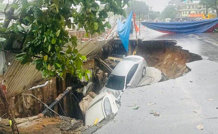Thời tiết mưa lớn kéo dài trước thời điểm xảy ra sự cố đã góp phần làm tăng lượng nước ngấm vào đất, gây xói mòn và làm giảm độ bền của nền đường. Nước mưa mang theo cát từ công trình, làm hỏng nền móng và gây sụt lún.