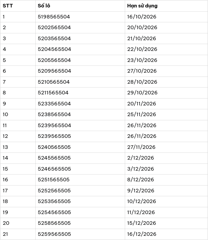 Không phải tất cả các sản phẩm bánh Gerber đều nằm trong diện thu hồi. Chỉ có một số lô bánh quy bột sắn (Arrowroot Biscuits) loại 155 gram, được sản xuất trong khoảng thời gian từ tháng 7 đến tháng 9/2025, mới bị ảnh hưởng. Để biết chính xác sản phẩm bạn đang có thuộc diện thu hồi hay không, hãy kiểm tra mã lô gồm 10 chữ số ở mặt sau bao bì, trước ngày “Best By”.