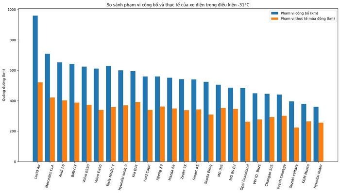 Điều này cho thấy người dùng tại các quốc gia có mùa đông khắc nghiệt cần cân nhắc kỹ phạm vi thực tế thay vì chỉ dựa vào thông số WLTP công bố khi lựa chọn xe điện.